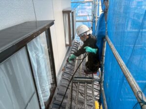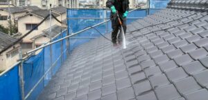 まずは、屋根と外壁を洗浄し、塗装の準備を整えていきます。