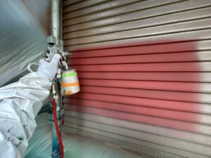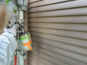 雨戸は吹き付け塗装で均等にしあげていきます。
